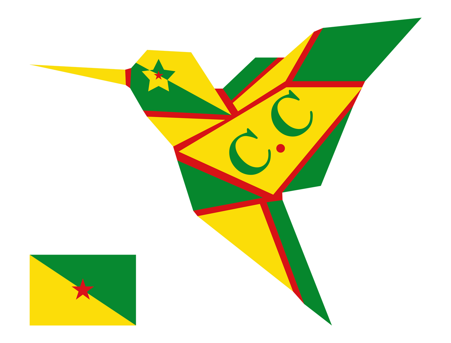 Dans ce design, on a conservé la base du drapeau et joué avec des formes d'étoiles et le positionnement des 3 coloris de base : le vert, le jaune et le rouge.